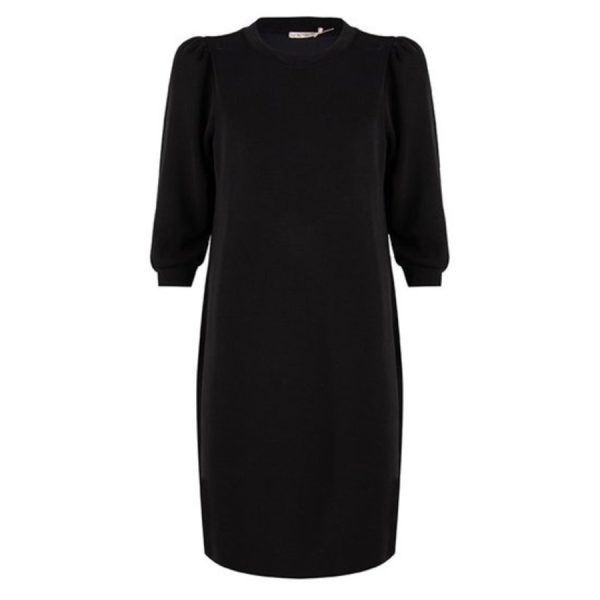 Zwarte jurk ‘05525 Puff Sleeve’ in modal stof van Esqualo.